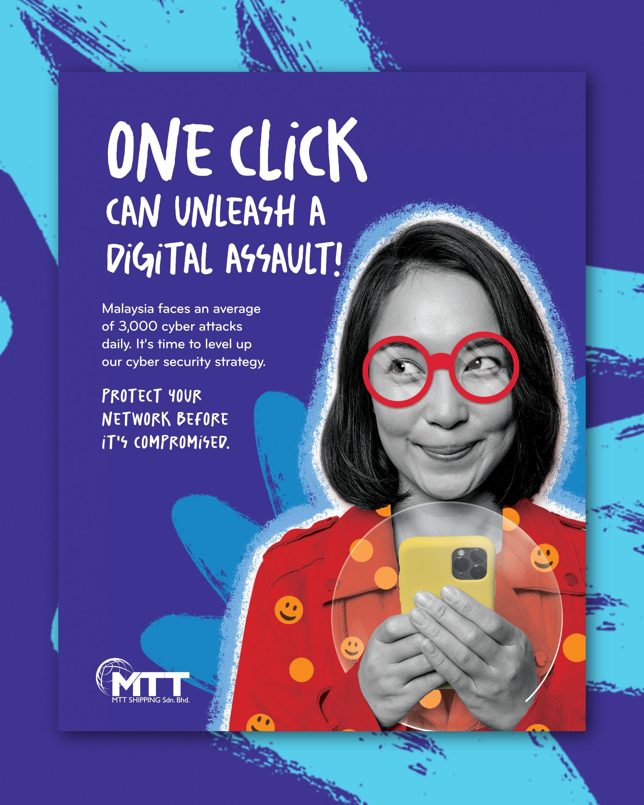 A vibrant digital art series for MTT Shipping’s 2025 calendar, designed to engage employees and raise awareness about cybercrime. These bold, dynamic collages break away from traditional corporate design to make cybersecurity education more impactful.